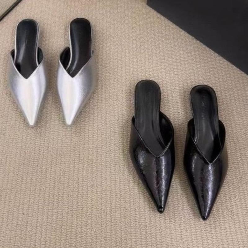 Fashion New Spring and Autumn Temperament Slip-on Kitten Heel Shoes Women's Pointed Toe Shallow Mouth Non-slip Wear-resistant Flip-flops