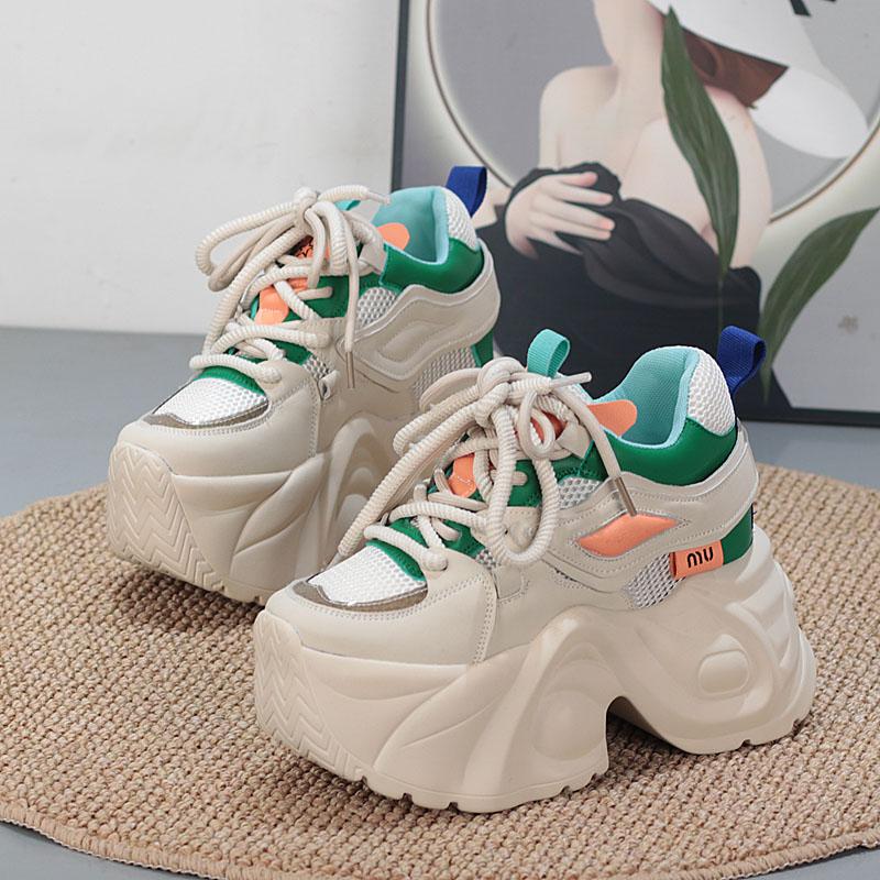 Fashion 10CM Air Mesh Microfiber Leather Chunky Sneaker Ankle Boots Shoes Women Flatform Wedge Bling High Brand Comfy Summer