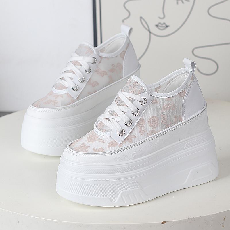 Fashion 12CM Air Mesh New Genuine Synthetic Leather Pumps Platform Wedge Summer Hollow Sandals Chunky Sneakers Women Fashion Shoes