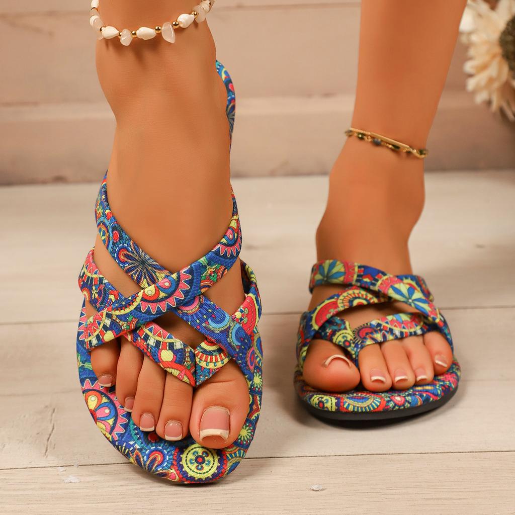 Fashion Bohemia Style Flat Sandals Women 2025 Summer Ethnic Outdoor Slippers Woman Plus Size 43 Retro Gladiator Shoes Slides