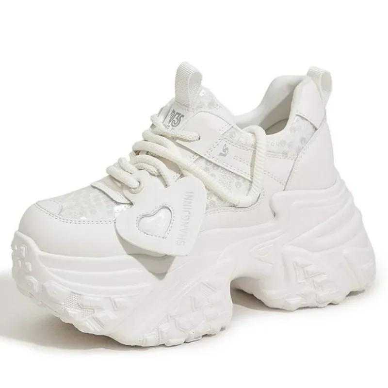 Fashion High Quality 10cm New Synthetic Genuine Leather Spring Women Comfy Vulcanize High Brand Autumn Boots Bling Chunky Sneakers Shoes