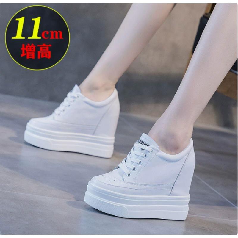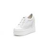 Fashion Women Genuine Leather 11cm Hidden Wedge Sneakers Platform Shoes High Heels Sneakers Woman Casual Shoes White Women Trainer