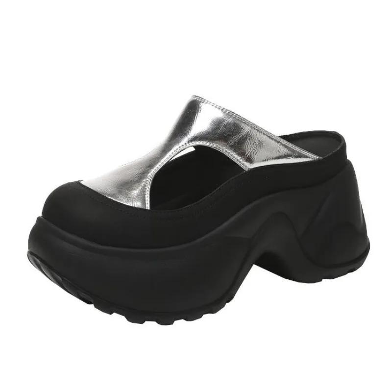 Fashion 9CM Synthetic Microfiber Leather Women Sandals Summer Hollow Bling Vulcanize Slipper Platform Wedge Flats Chunky Sneakers Shoes