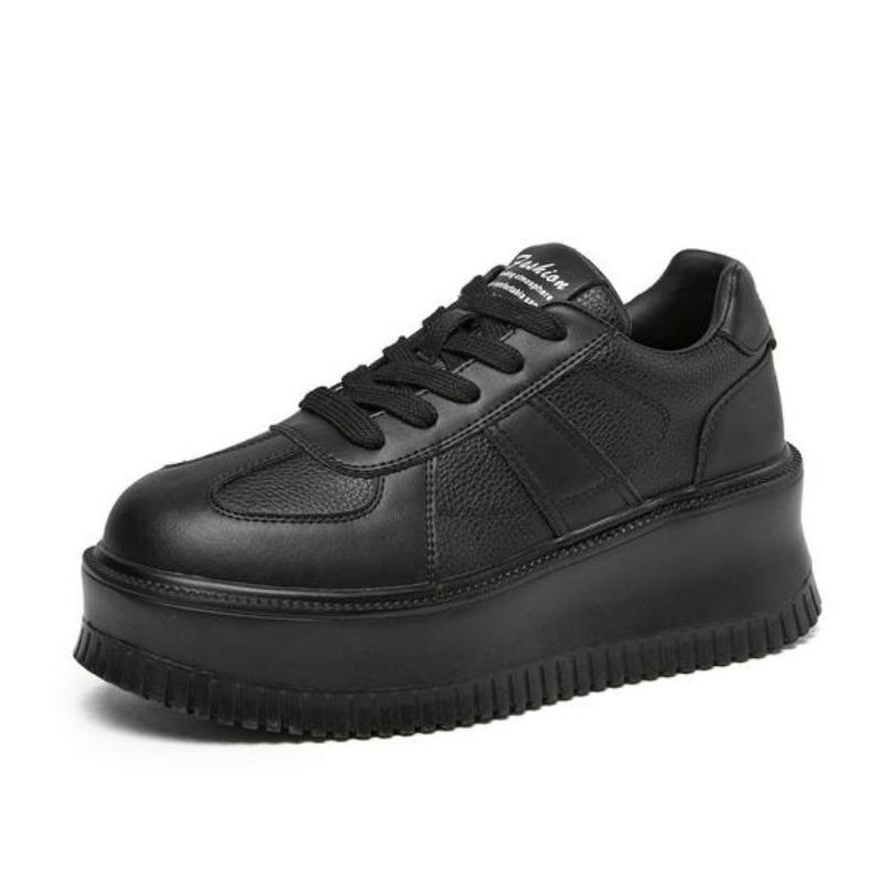 Fashion 6CM Genuine Leather Women's Casual Thick Bottom Sneakers Spring Style Versatile Student Fashionable Board Shoes Upper Lace-Up