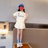 Girls' Summer 2024 Polo Collar Letter Top & Pants Set