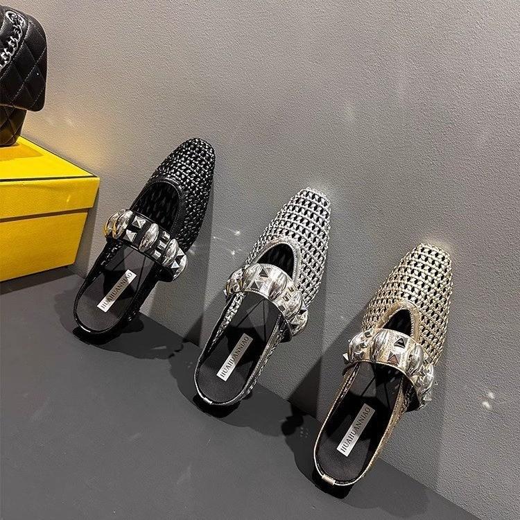 In the Summer of 2025, the New French Retro Hollowed-out Fishing Net Is Breathable, and the Inner Height Is Increased. Sandals for Women Wear Bag H