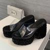 Eilyken PVC Transparen Open Toe Platform Wedges High Heels Women's Slipper Designer Bling Sequin Cloth Banquet Shoes
