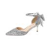 Sexy Black Swan Crystal Fine Heels Women's Flat Shoes Pointed Tip Bow Decorated Single Shoes Summer Season