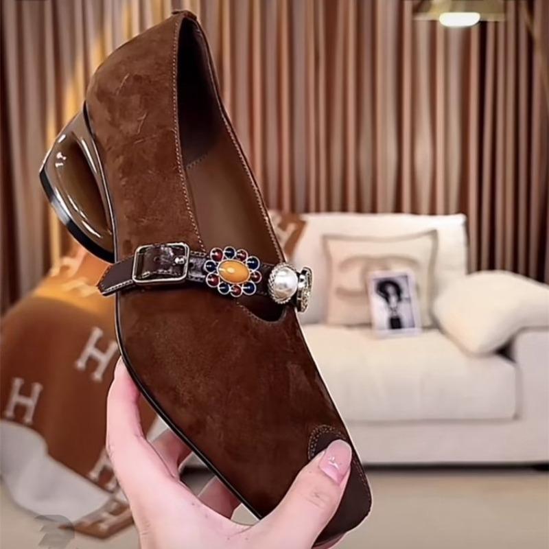 Women's Thick Heel Shoes Fall New Square Head Shallow Mouth One Word Buckle Non-slip Wear Comfortable Low Top Shoes