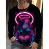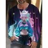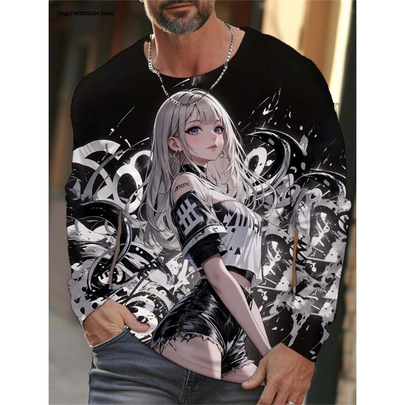 Anime Girl Graphic 3D Printed Top Casual Long Sleeved Men's T-shirts - Soft Medium Stretch Polyester Fabric Spring and Autumn Relaxed Fit Clothing