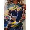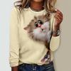 Round Neck 3D Cat Pattern T-shirts Casual Long Sleeved Women's T-shirts - Soft Medium Stretch Polyester Fabric Spring and Autumn Relaxed Fit Clothing