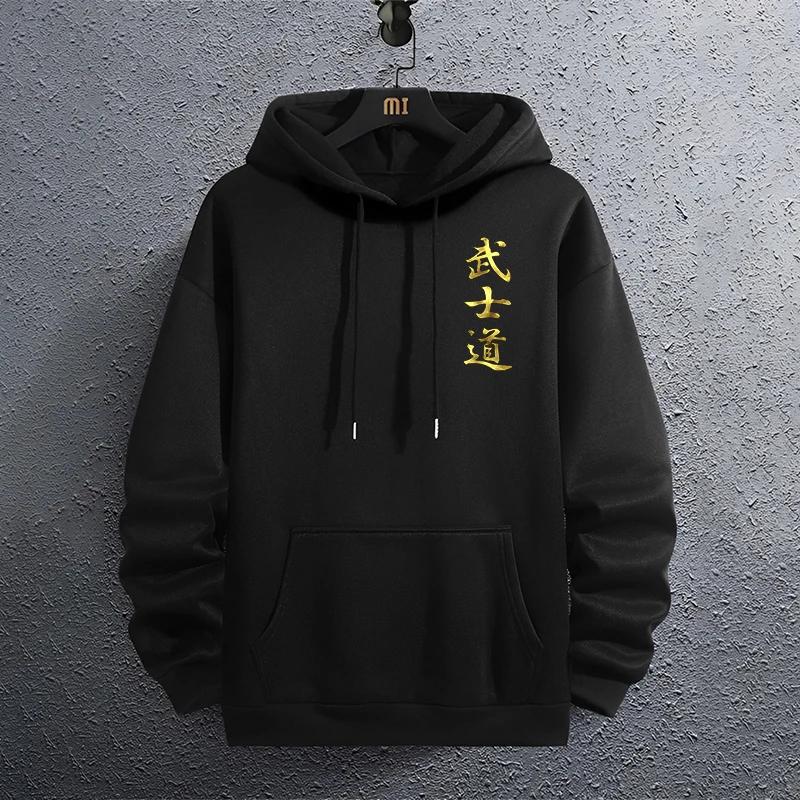 2025 New Fashion Men's Bushido Print Hoodie High Grade Male Outdoor Casual Sport Hooded Sweatshirt Home Outdoor Comfort Pullover