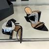 Fashion Fashion Crystal Buckle Luxury High Heels Summer Sexy Pointed Toe Slide Sandals Elegant Wedding Bridal Shoe Party Shoes for Women