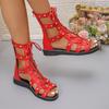 Fashion 2025 New Women Sandals Hollow Round Head Cross Strap Casual Flat Shoes for Women Fashion Summer Women Sandals Zapatos De Mujer