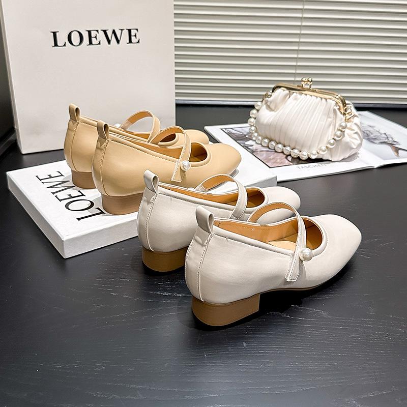 Half-curve Inner Height Increase Temperament French Single Shoes Women's Autumn New Light Mouth Gentle Square Head Medium Heel Mary Jane Shoes