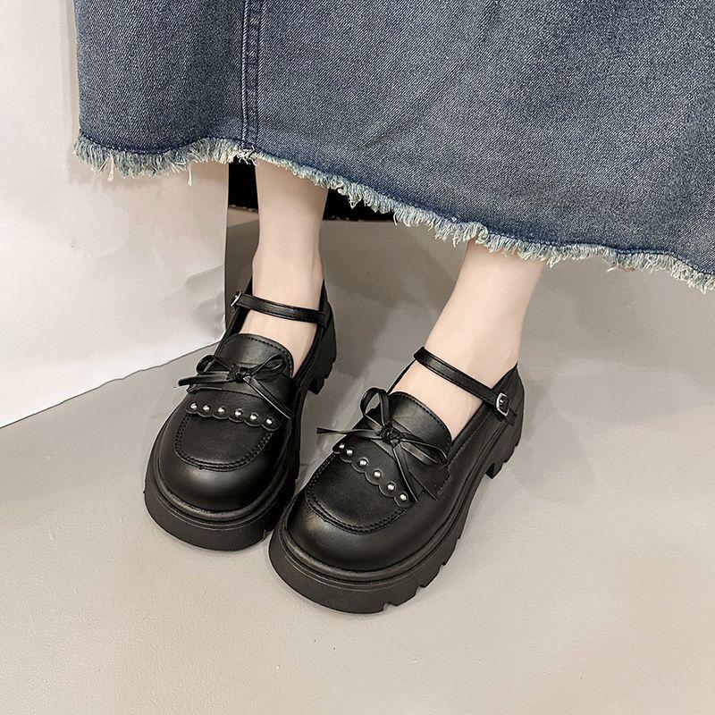British Style Retro Versatile Skirt Mary Jane Single Shoes Spring and Summer New Platform Bow Small Leather Shoes Women