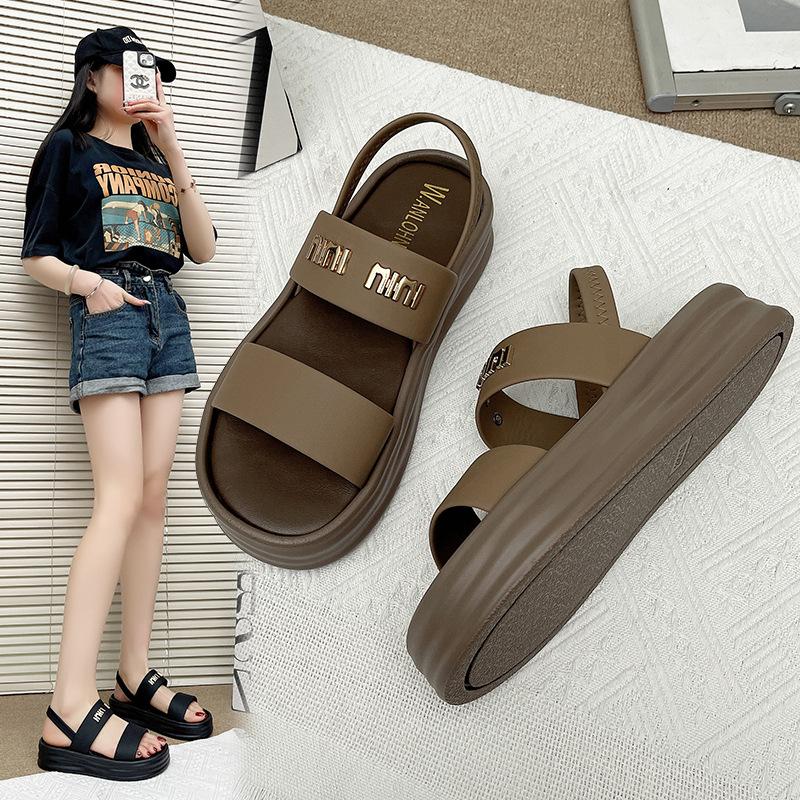 Summer New Niche with Casual Platform Sandals Women's One-word Open-toed Beach Sandals Women