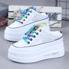 Fashion Summer Gauze Breathable Small White Shoes Wrapped Head Half Slipper Female Thick Sole Inside Increase 10CM Heelless Lazy Shoes