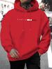 Men's Paris Letter Print Hoodie 100% Polyester Regular Fit Long Sleeve Pullover with Drawstring Hood Autumn Sweatshirt