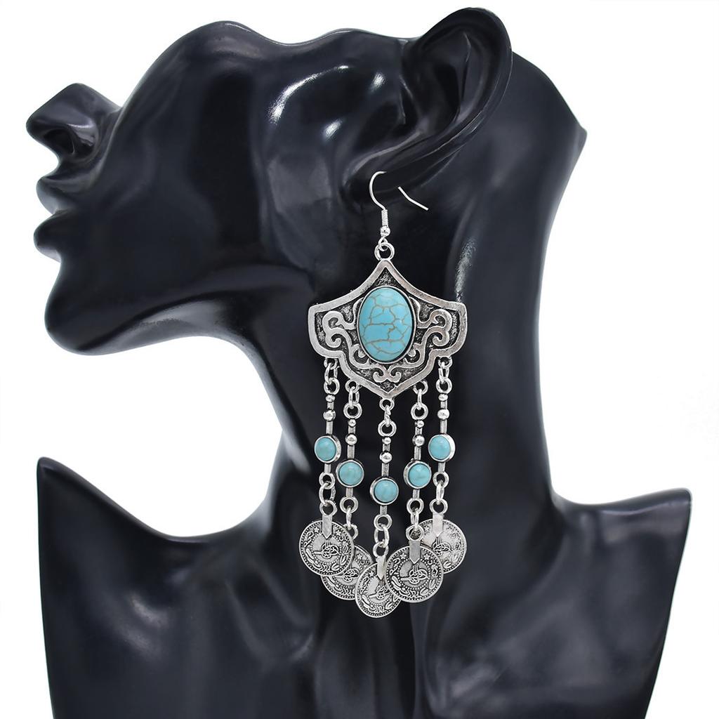 Ancient Silver Alloy Earrings, Xinjiang Ethnic Style Jewelry, Turkish Coins, Women's Fringed Earrings.