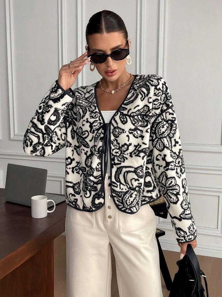 European & American Women's Tie-Waist Color-Block Long-Sleeve Jacket for Autumn/Winter