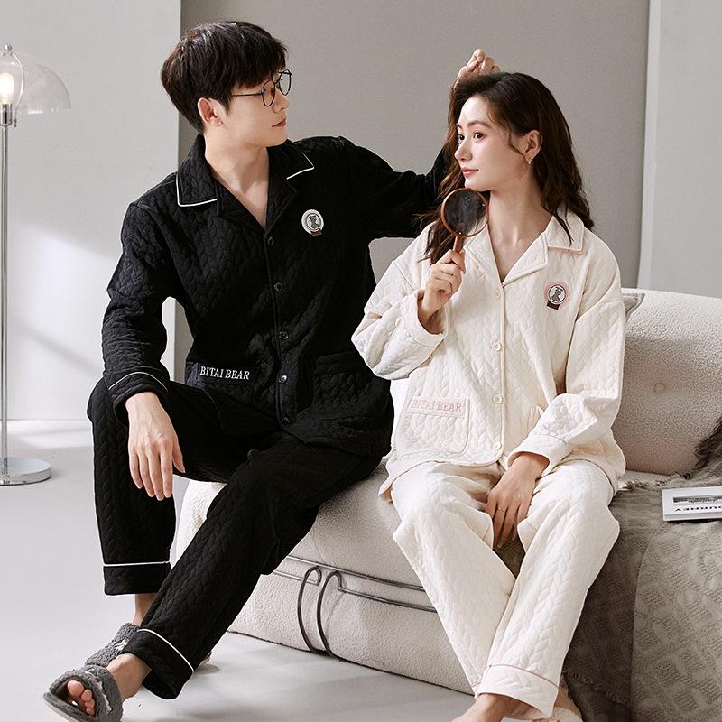 Stay cozy with this charming set of cartoon-themed pajamas, perfect for couples seeking warmth and style during the colder months. Made from thick cotton and designed in a trendy Korean style, these pajamas are ideal for both men and women. The soft, high-quality polyester fur adds an extra layer of comfort, making this set a must-have for relaxing autumn and winter evenings.