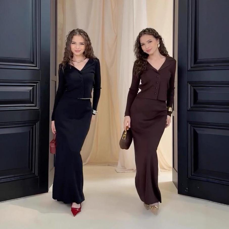 Elevate your autumn wardrobe with this stylish sweater and skirt set, designed exclusively for women. Crafted from high-quality polyester, the set features a sophisticated V-neck long-sleeve sweater paired with a matching slim-fit knit skirt. The solid pattern adds a touch of elegance, making it perfect for both casual and formal occasions. Embrace comfort and style effortlessly with this chic ensemble.