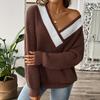 European & American Women's Color Block V-neck Loose Knit Sweater