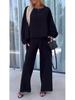 Autumn 2025 Women's Solid Color Round Neck Two-Piece Set with Long Sleeve Top & Elastic Waist Pants