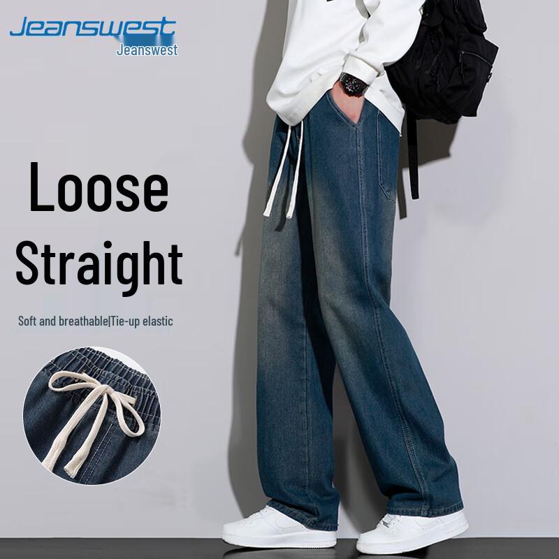 JEANSWEST Men's American Retro Loose Wide-Leg Jeans