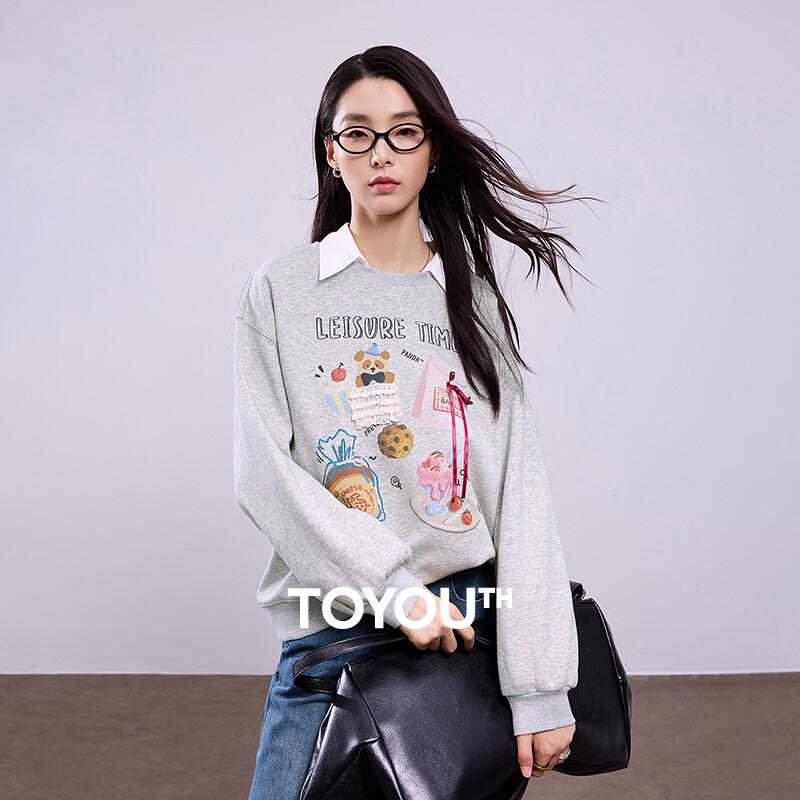Chuyu Women's 2025 Autumn Loose Cartoon Print Fleece Sweatshirt