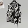 Sibaishai Women's Fashion Patchwork Single-Breasted Round Neck Vest