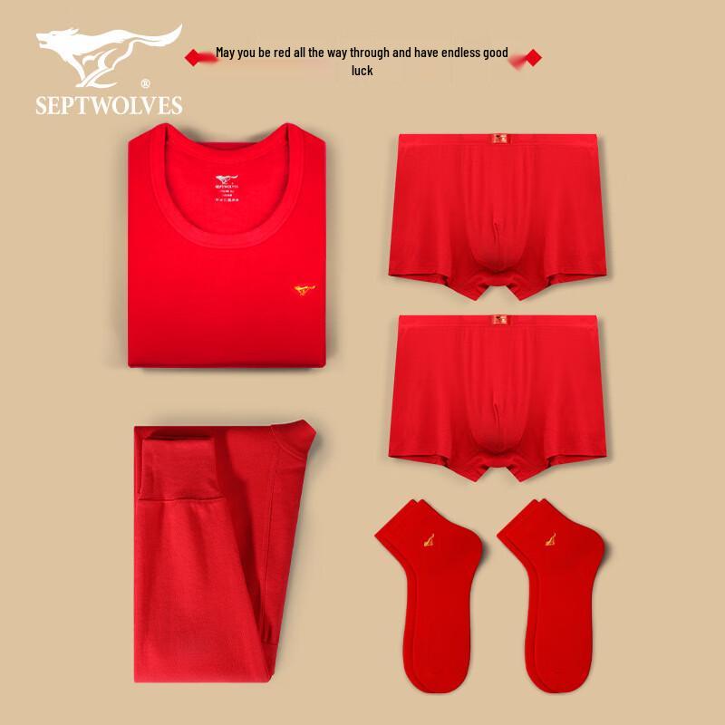 Septwolves Men's Red Thermal Underwear 6-Piece Gift Set