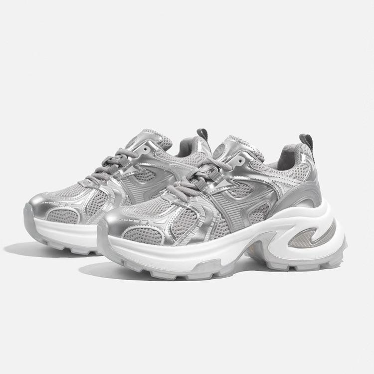 Small Platform Dad Shoes Women's 2025 Spring New Silver Mesh Fashion Versatile Height-increasing Casual Sports Shoes