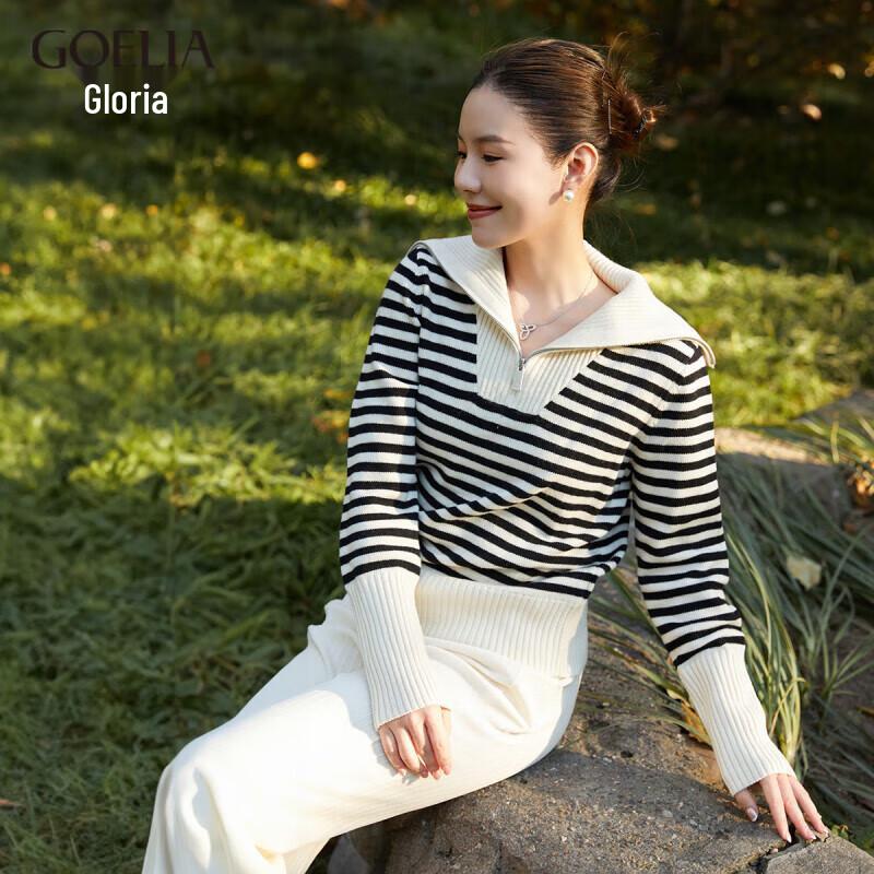 GOELIA Women's Striped Lapel Knit Sweater
