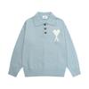 AMI White Heart-shaped Jacquard Alpaca Wool Blended Loose Sweater Polo Collar Men Pullover Sweater