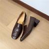 Old Money Style Retro Square Head Thick Heel Loafers Women's Autumn Middle Heel Single Shoes Commuter Small Leather Shoes Brown