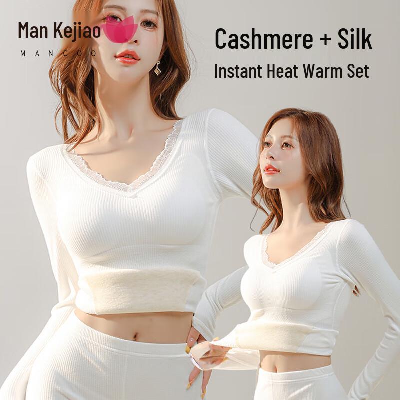 MankeJiao Women's Cashmere Silk Blend Thermal Underwear Set