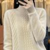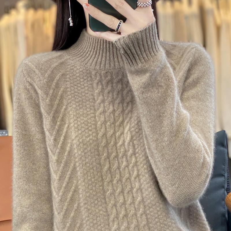 Autumn Winter Knit Top Women Loose Cropped Base Layer Semi High Neck Outerwear Pullover Sweater