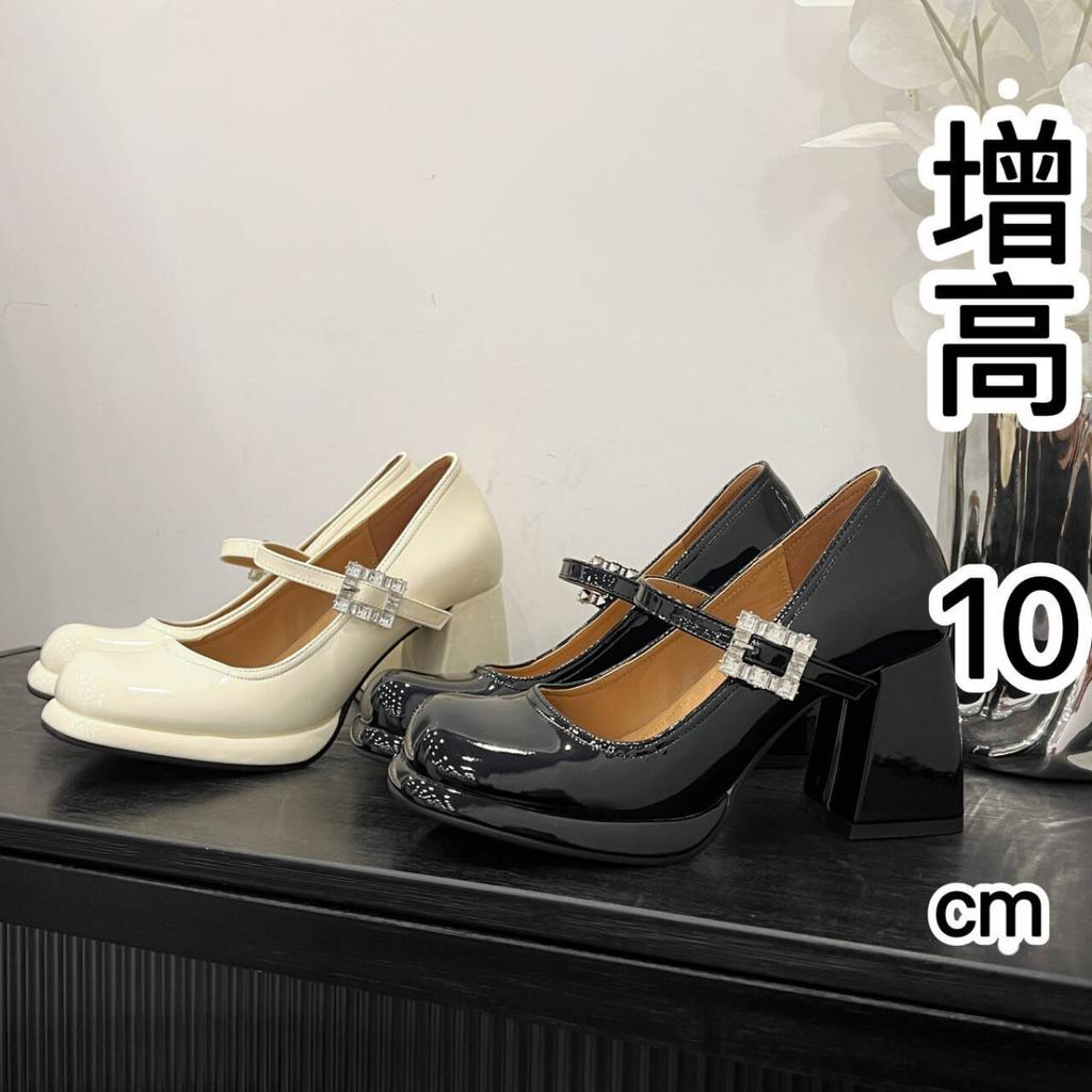 Fairy Wind Word with Rhinestone Mary Jane Shoes 2025 Spring New Versatile Thick Heel High Heels Patent Leather Single Shoes Women