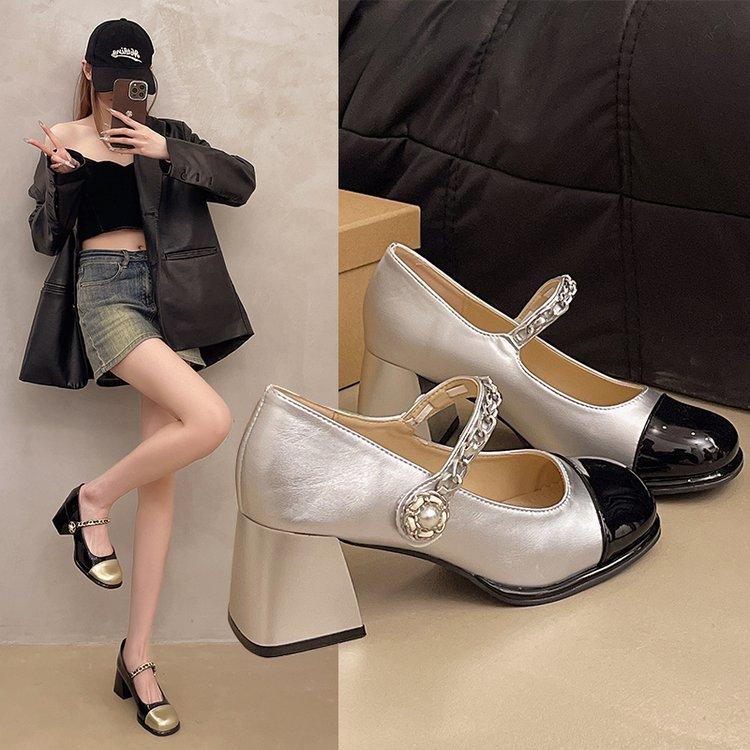 French Mary Jane Small Leather Shoes Women's Summer 2025 New Thick Heel High Flat Heel Shoes Temperament Small Fragrant Single Shoes Women
