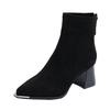 Black French High-heeled Short Boots Women's 2025 New Retro Metal Square Head Thick Heel Thin Boots Rear Zipper Fashion Boots