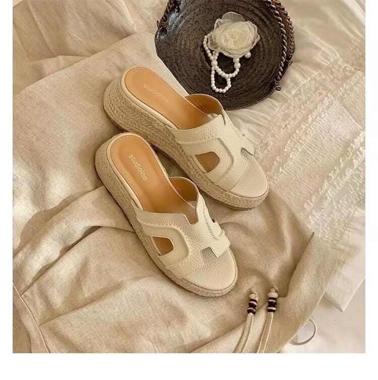 Grape Mother Studiolee Increased by 6cm~ Ruth Has the Same Retro One-word Thick-bottomed Slope Heel H Cool Slippers for Women's Summer