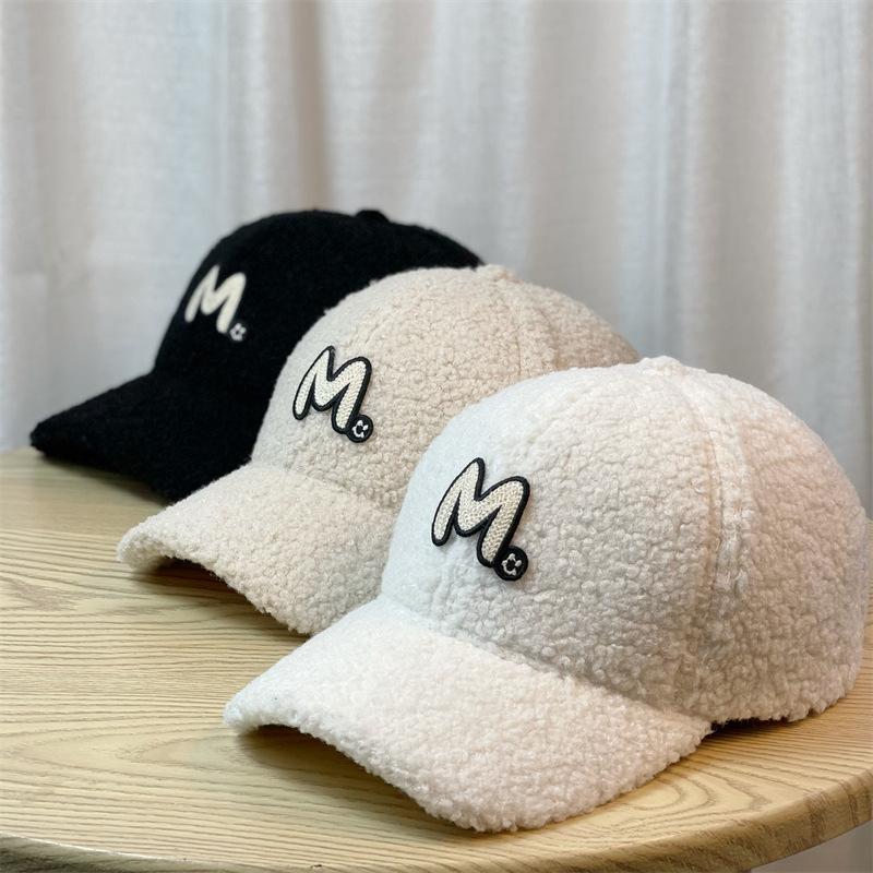 New M Embroidered Letter Hat for Women Autumn and Winter Lamb Velvet Baseball Cap Korean Version Ins Casual Thickened Warm Peaked Cap