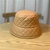Korean Style Hat for Women Versatile Matte Pu Leather Plaid Fisherman Hat Face Showing Warm Autumn and Winter Japanese Style Basin Hat
