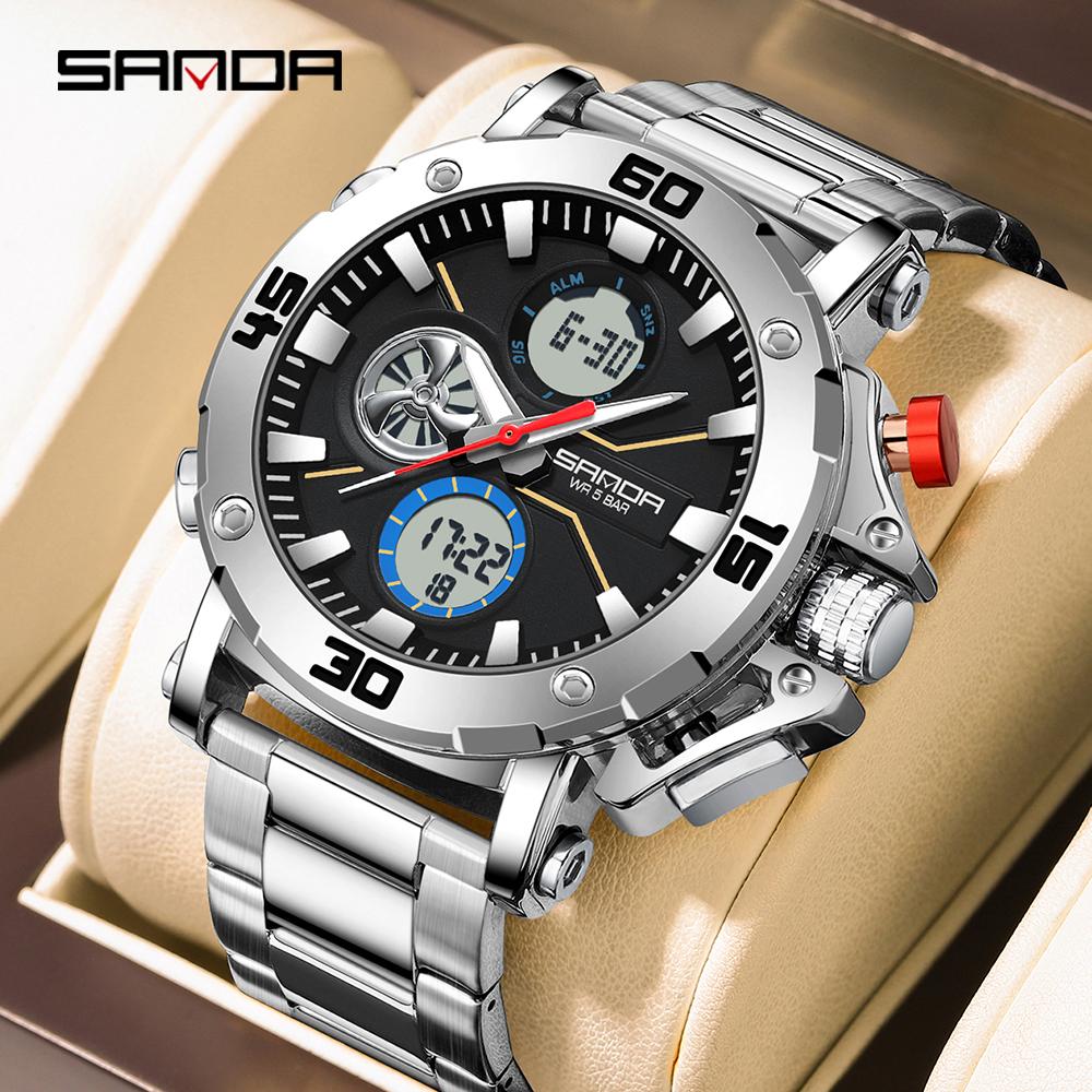 SANDA Luxury Men's Watch Military Sports Waterproof Night Light Stopwatch LED Electronic Digital Men's Watch
