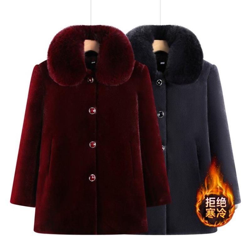 Winter Imitation Mink Coat Women's Fur Collar Fleece Thickened Cotton Coat Medium and Long Coat