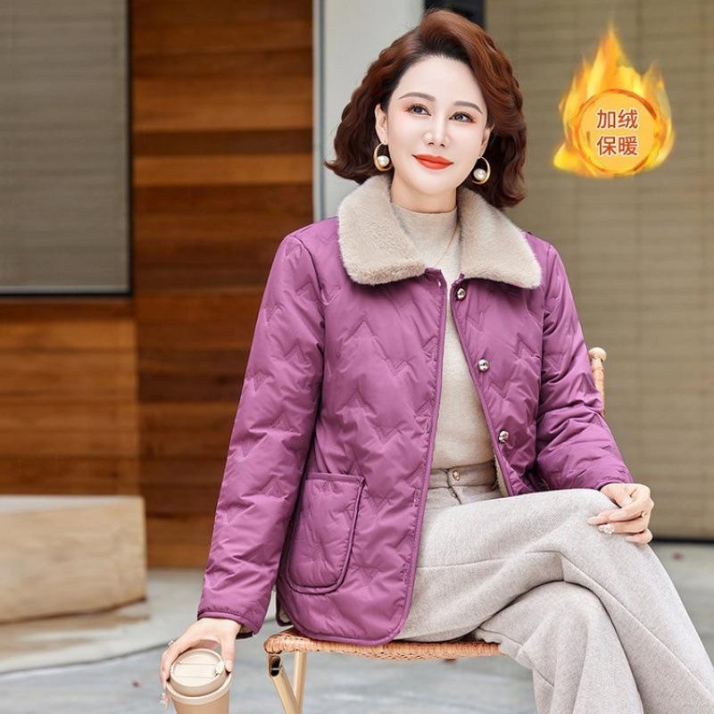 Women's Clothing Fleece Warm Low-fleece Cotton Jacket Simple Commuting Fur Collar Middle-aged Autumn and Winter Cotton-padded Clothes