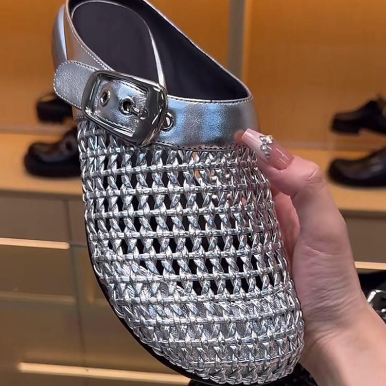 Niche Thick-soled Half-drag Women 2025 European Station New Outer Wear Fashion Temperament Sandals Belt Buckle British Single Shoe Trend