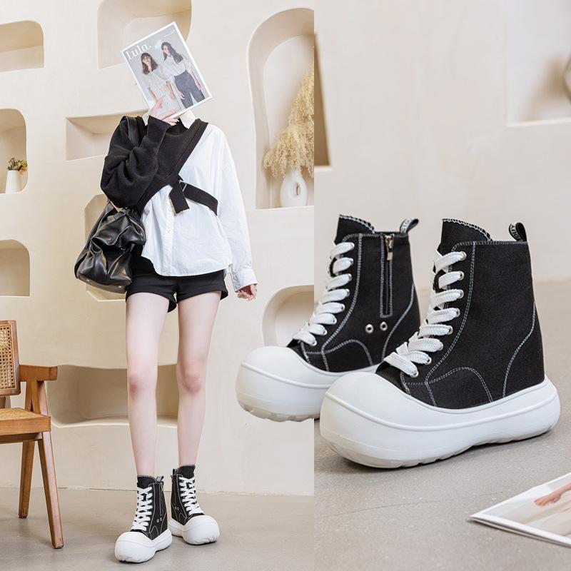 Lace-up Big-headed Espadrilles In the Spring and Autumn of 2025, New Versatile Inner Height-increasing Thick-soled Medium-top Board Shoes, Women's Si